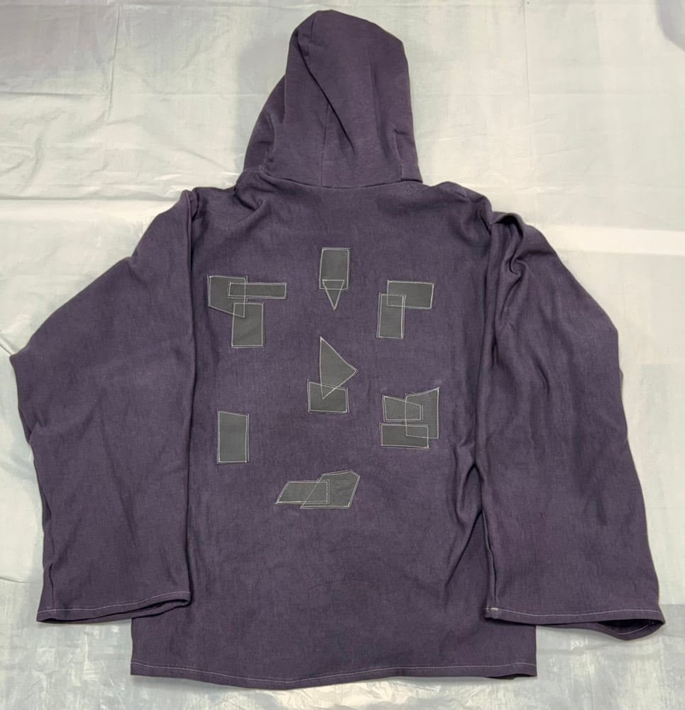 Cowhide Patchwork Cotton Fleece Hoodie (Midnight Blue/Clay)