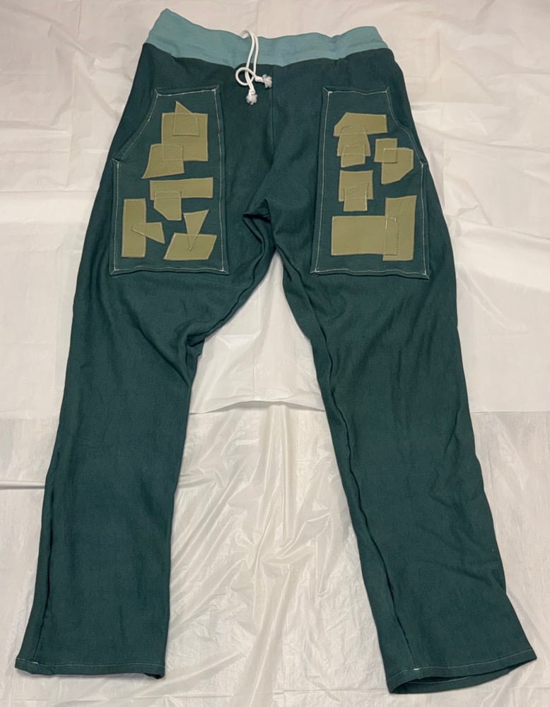 Cowhide Patchwork Cotton Fleece Sweatpants (Sea Foam Green/Mint)